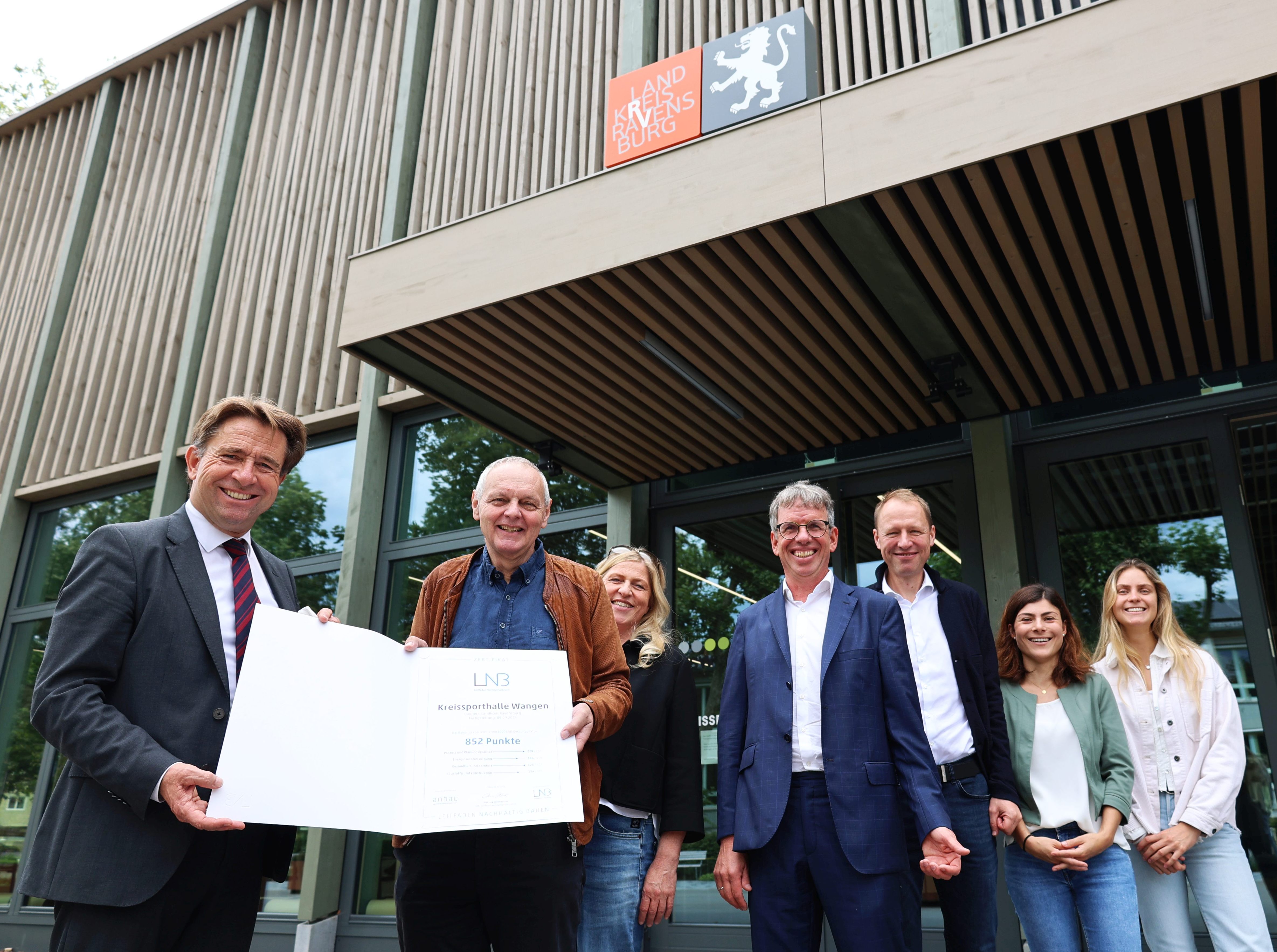 Mit großer Freude dürfen wir Ihnen mitteilen, dass der Bau der Kreissporthalle Wangen von der LNB – Leitfaden Nachhaltig Bauen Gmbh zertifiziert wurde. Das Gebäude erreichte 852 von 1000 möglichen Punkte und liegt damit deutlich über der angestrebten Marke von 750 Punkten. Ein herausragendes Ergebnis und ein großartiger Erfolg für alle Beteiligten!